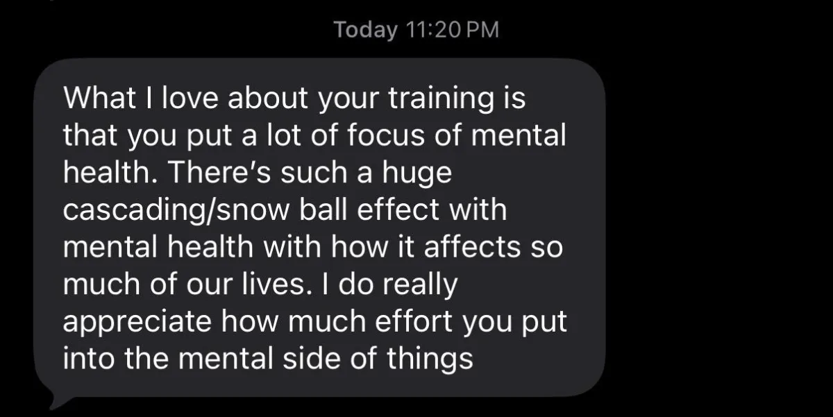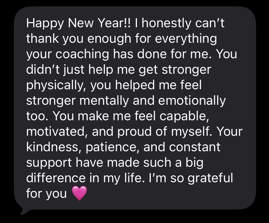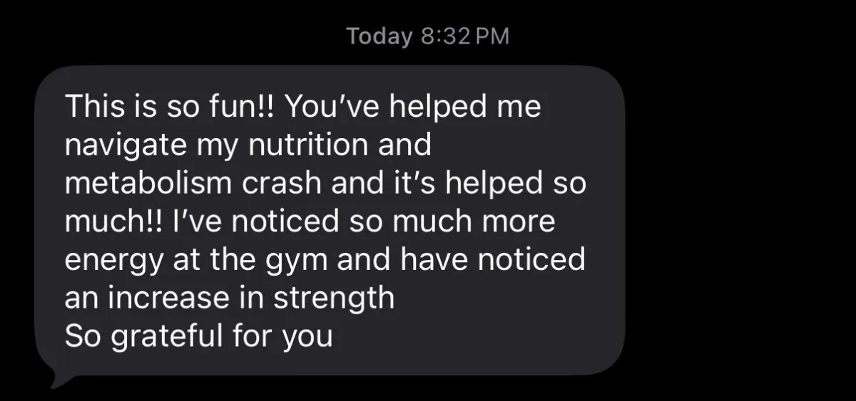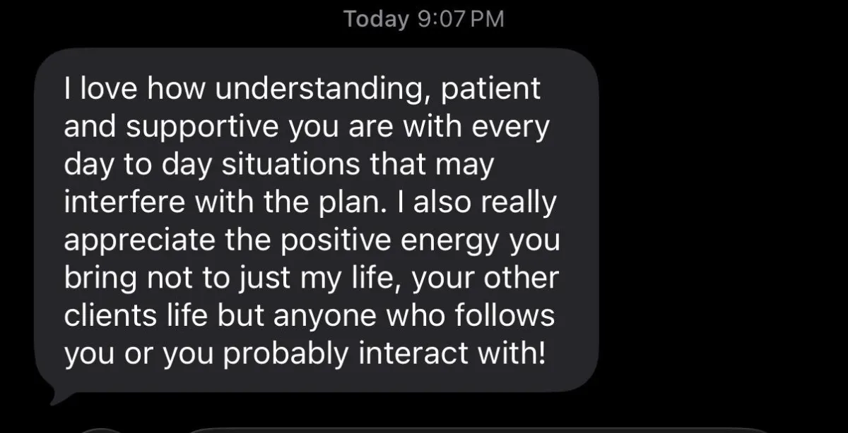 My coaching is about more than just getting you a physical result, it’s about helping you build a healthy relationship with food and with yourself while you work toward your goals. We focus on the mental side just as much as the physical: reducing guilt around food, and creating routines you can actually stick to. Then we pair that with a sustainable plan for training and nutrition that fits your lifestyle, so you’re not constantly starting over, you’re building something you can maintain.